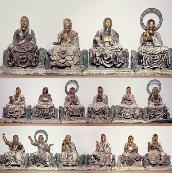 その中でも釈迦如来の薫陶を受けて永くこの世に住し衆生を済度する役割をもった十六人の羅漢のことを十六羅漢といいます。目には玉眼という水晶で作られた目がはめ込まれており、それぞれに様々な表情、格好をされた凛とした仏像です。